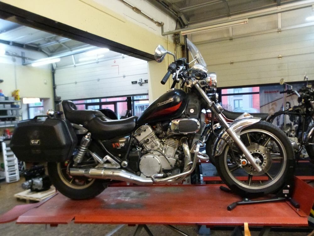 Ein Kunde hat uns seine Kawasaki VN750-A2 Vulcan gebracht und klagte über eine Ölleckage am Motor. Es handelt sich hierbei um ein 1986-er Modell mit einer Laufleistung von ca. 51.000 km.